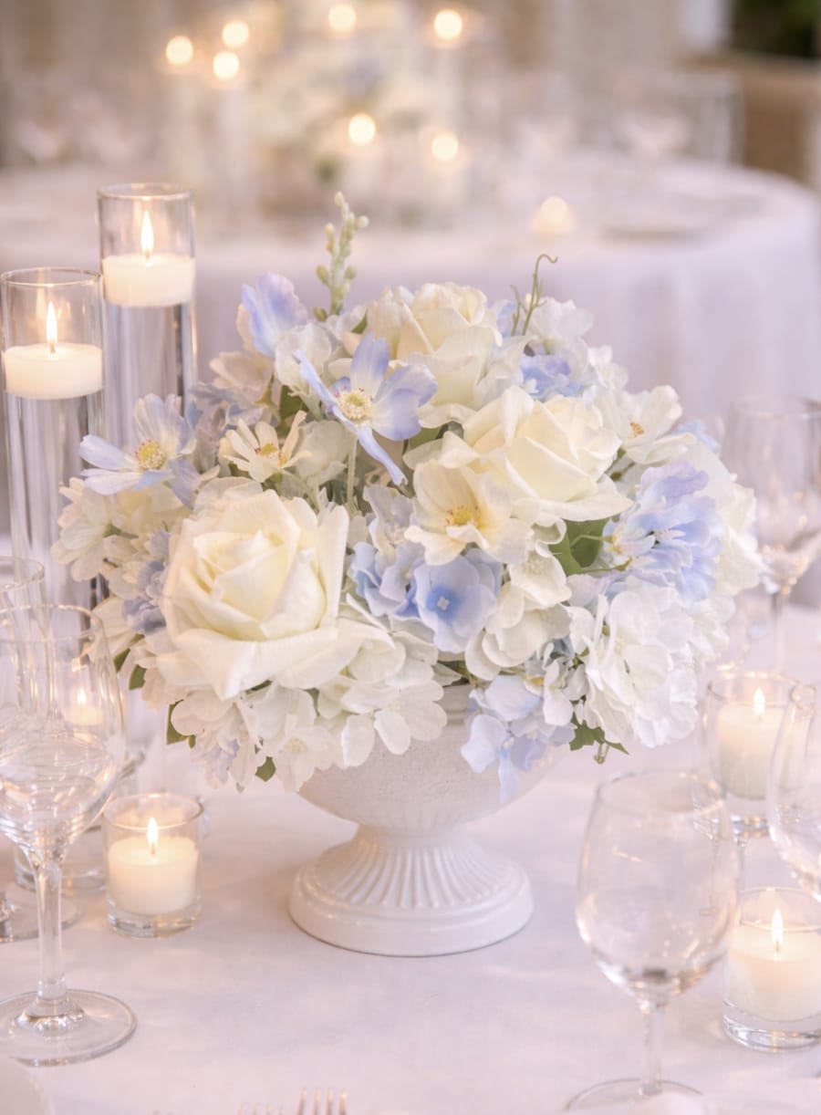 Book the ‘Eloise’ centerpiece today to secure elegant, low-maintenance centrepieces that elevate your wedding tables without breaking the budget. Contact us for availability, custom colours and tailored quotes.